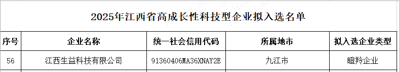 近日,江西省科学技术厅公示了2025年江西省高成长性科技型企业名单,江西生益科技(600183)有限公司榜上有名!成功荣获江西省“瞪羚企业”称号!